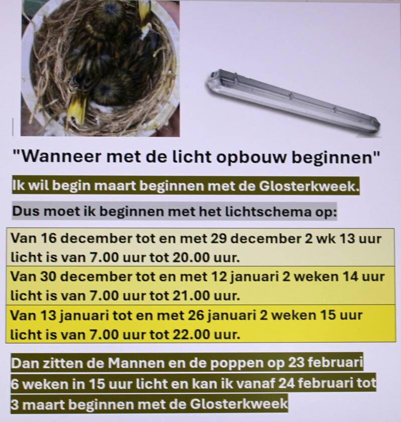 Ik ben wat vroeger dan ik had geplant begonnen ( 1 Januari ) met de kweek en dat komt, omdat de poppen al volop met papier en veertje aan het slepen waren toen ze 3 weken op 15 uur licht zaten en ook de mannen zaten pas 3 weken op 15 uur licht dus nu maar hopen dat de mannen er ook aan toe zijn